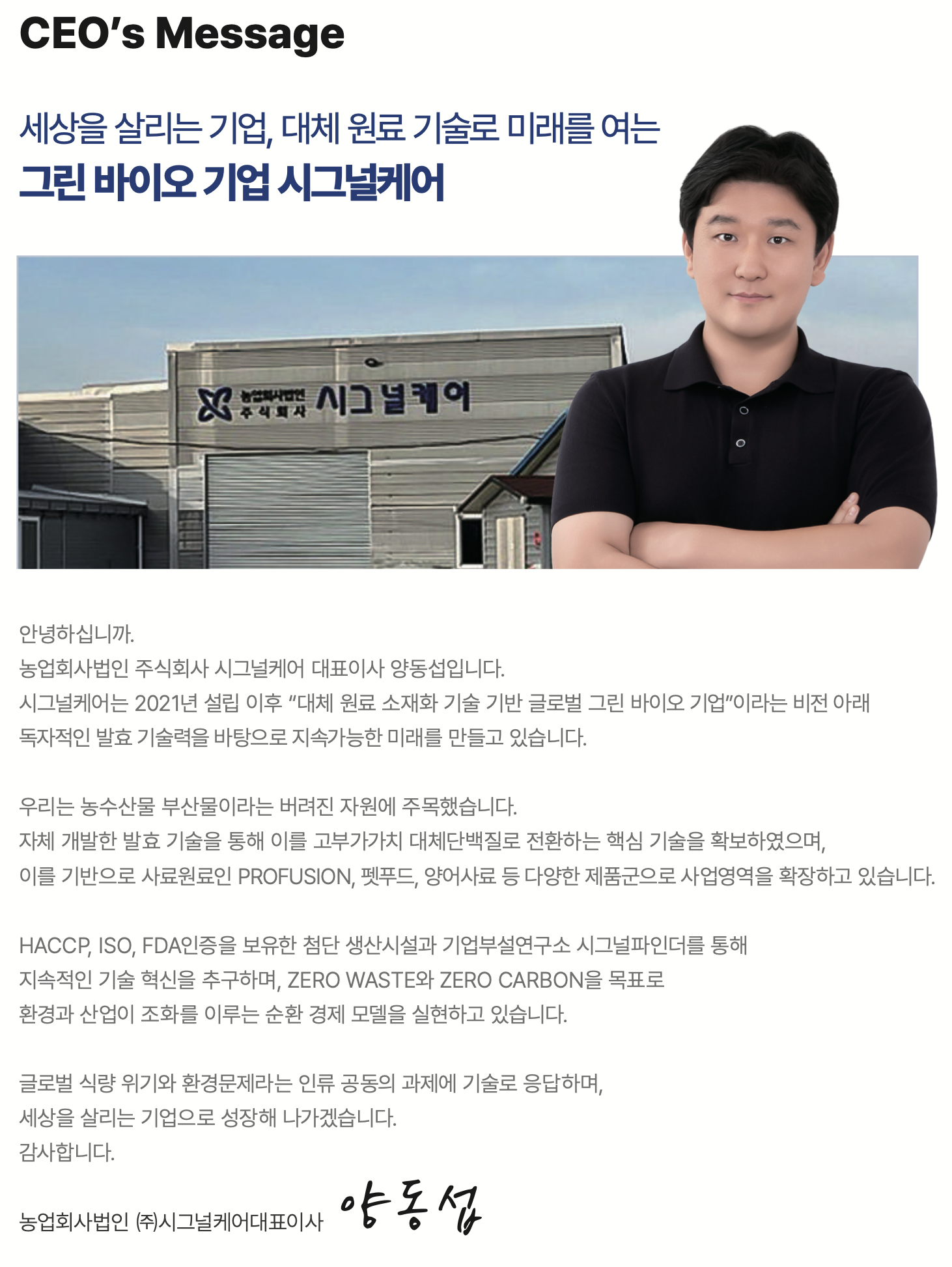 농업회사법인 주식회사 시그널케어 대표자 : 양동섭 사업자등록번호 : 667-87-02350